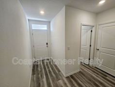 BRAND NEW DR Horton 3 Bedroom, 2 Bathroom Home on a Fenced Conservation Lot in the Wyndfields Community of Wesley Chapel. Just completed and ready for its first residents. The Color Palette and Interior Design feel Modern and Sophisticated with Gray Tones and attractive Woodgrain Luxury Vinyl Flooring. Such a stylish Kitchen with its coordinating Quartz Counters, Stainless Steel Appliances, White Shaker Cabinetry, and extended Island with Sink and barstool height Countertop. The Kitchen overlooks the Living Room and Glass Slider to the Backyard. Perfect for Entertaining. The Primary Bedroom is located toward the back of the Home. This large room has an En-Suite Bathroom, Ceiling Fan, and Walk-in Closet. The Primary Bathroom feels lush with a long Quartz Counter with two Sinks and a Tiled Walk-in Shower. The 2 additional Bedrooms are toward the front of the Home and have Carpet, Ceiling Fans, and large Closets. They share an eye-catching Full Bathroom with a Tub-Shower. You will enjoy the outside year-round under the Covered Rear Porch overlooking a Conservation Area and the Fully Fenced Backyard. Private and Peacefull with no rear neighbors. The Wyndfields Community is a New Neighborhood wedged between SR56 and Meadow Pointe Boulevard. It has great access to Restaurants, Shopping, and Activities. Community Amenities include a Clubhouse with multiple Pools, Cabanas, Parks, and Playgrounds. Pets permitted (pet screening and owner approval are required). $350 Non-refundable Pet Fee for each pet. The property is Professionally Managed and Maintained. There is a one-time $150 Administration Fee and $75 Application Fee for each applicant 18 years or older. Applicants should have a minimum 650 Credit Score, Gross Monthly Income of at least 2.5 times the Monthly Rent, and stable Rental History (no Evictions or Tenant Collections).
