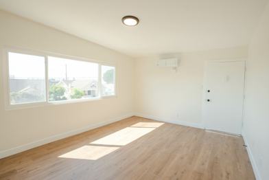 This 1 bedroom, 1 bathroom apartment has been completely remodeled throughout. The living area features new flooring and updated lighting within a bright, open layout that feels warm and inviting. The kitchen is equipped with a brand-new stainless steel refrigerator and electric range, complemented by new countertops and modern finishes. The bathroom has been fully upgraded with new tile, vanity, and fixtures, creating a fresh and contemporary feel. The unit is all-electric, includes air conditioning for year-round comfort, and residents have access to an on-site community laundry room.