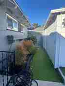 The home features a private backyard perfect for entertaining, highlighted by a charming oval-shaped pool. The spacious primary suite opens to two private side patios, creating a seamless indoor-outdoor feel. Additional highlights include gated, private parking with space for up to four cars—an exceptional convenience in this prime location.