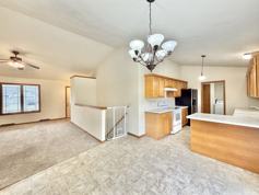 Inside, you'll find cozy carpeted living spaces, ceiling fans for added comfort, and a functional kitchen equipped with a dishwasher. Laundry machines are included for everyday convenience, and garage parking adds both security and ease.