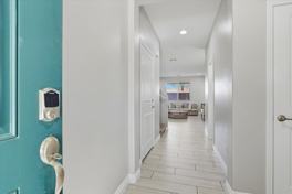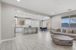 This 3-bedroom, 2.5-bathroom home is located in a desirable gated community and offers stylish living with thoughtful design. The main level features custom tile flooring and a chef's kitchen complete with white cabinetry, stainless steel appliances, and a striking waterfall quartz island. Upstairs, all bedrooms and the laundry room are conveniently located. The private primary suite is separated from the secondary bedrooms and includes an oversized closet along with a bathroom featuring a separate tub and shower. The fully enclosed backyard with spa is surrounded by a block wall, providing added privacy.