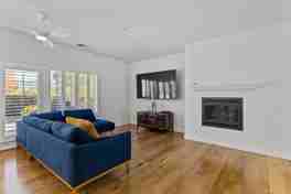 As you walk into this home, you are greeted with a spacious living room, with formal dining space that perfectly flows into the kitchen. This beautifully redone kitchen has it all- updated stainless steel appliances, quartz counter tops and new cabinets, with stunning oak flooring and custom shutters. The spacious and natural light filled living space has a large dining area for entertaining that spills into the back patio for indoor outdoor living. Plus, there's an elegant gas fireplace to keep you cozy during the winter time. There are two formal bedrooms, plus a third flex room and two full bathrooms located off of the living space.