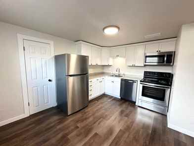 Welcome to this beautifully renovated 4plec located in Caldwell. This one-bedroom, one-bathroom unit has undergone a full renovation in 2023, ensuring that everything is brand new and ready for you to move in. As you step inside, you'll be greeted by luxury vinyl plank flooring throughout the living spaces, providing a modern and stylish touch. The bedroom features new plush carpeting, creating a cozy and comfortable atmosphere as well as a closet and built in dresser. The bathroom boasts a tiled walk-in shower, perfect for unwinding after a long day. With 650 square feet of living space, this lower garden unit offers ample storage throughout. The large open kitchen is a chef's dream, complete with all stainless steel appliances included. Onsite laundry facilities make chores a breeze. The large windows in this unit allow for an abundance of natural daylight, creating a bright and inviting ambiance. Situated within walking distance to stores and close to the College of Idaho, this 4plex offers a great location with easy freeway access. Say goodbye to lawn care as it is taken care of for you. This turnkey unit in a 4plex is the perfect place to call home. Don't miss out on this opportunity to live in a beautifully renovated duplex in Caldwell across the street from the college of Idaho and walking distance to several stores.