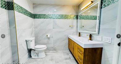 Rehabbed 3BR/3BA home in McNeil Estates with pool, spa, outdoor shower, 2-car garage, and 2-car carport. Meticulously designed with unique retro features like pink tiled shower and green bar/stools. Enter through double French doors to a view of the sparkling pool. Modern 48”x24” tile floors provide upscale continuity. The open Chef's kitchen boasts a large island, quartz countertops, designer custom cabinets, high-end (THOR) SS appliances. Primary and hall baths showcase floor-to-ceiling tile and LED mirrors. Designer gold-finish fixtures, hardware, and ceiling fans add to the overall elegance. Pool and Landscape service is included in the rent amount.