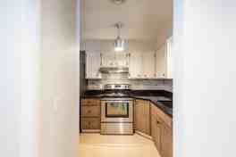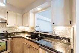 The kitchen comes fully equipped with appliances, ample counter space, and plenty of cabinets. The master suite in this townhouse is a spacious and cozy room. Located on the second floor, it offers a peaceful and private oasis from the rest of the home. The bedroom itself is generously sized and features large window overlooking the common grounds out back. And with its designer tile and neutral color palette, the space feels warm and inviting.