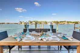 Stunning waterfront estate on exclusive Palm Island featuring a private dock, pool, balconies with sweeping bay views, and an open-concept layout ideal for entertaining. Includes a gourmet kitchen with wet bar, a separate guest house with full kitchen and bath, a 5-car garage, and 2 boat slips. Enjoy resort-style living with 24/7 guard-gated security and access to tennis, basketball, playgrounds, and picnic areas.