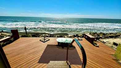 Bottom Floor (ocean front) Studio in South Oceanside. Wake up to sweeping ocean views and the soothing sound of waves in this studio located directly on the beach in Oceanside, available on a one-year lease. The home features a well-appointed kitchen with a full-size stove, refrigerator, microwave, and breakfast bar, along with a thoughtfully designed layout that includes a wall separating the living and sleeping areas for added privacy.