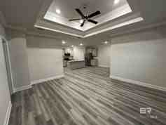 Brand new 4 bedroom, 2-bathroom new construction home in the Harvest Green East neighborhood in Fairhope, AL. Home features engineered vinyl plank floors throughout, NO CARPET, trey ceilings with ceilings fans in living room and primary, crown molding in all common area, and granite countertops in kitchen and baths. Kitchen showcases large island with spacious pantry and stainless-steel appliances including an electric range, microwave, dishwasher, and refrigerator. Primary bath features garden tub, separate walk-in shower, private water closet, and large walk-in closet. Screened in back porch. Community amenities include 2 pickleball courts, a pool, and multiple lakes.