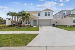 Have you ever wanted to live in a professionally decorated new construction model home? Now is your chance! This stunning 5-bedroom, 3-bathroom furnished home is available for rent in the sought-after Bradbury Creek community in Haines City. This absolutely stunning home features quartz countertops throughout, stainless-steel appliances, and a smart thermostat for energy-efficient climate control. Luxury vinyl flooring complements the open-concept living space, perfect for entertaining. The downstairs guest suite and full bath are thoughtfully tucked away for added privacy. Upstairs, enjoy a spacious recreation area ideal for family time or relaxing. The owner’s suite is a true retreat, offering a walk-in shower, double vanities, and a generous walk-in closet. The laundry room with brand-new washer and dryer is conveniently located just outside the owner’s suite, near the additional three bedrooms and full bathroom. Fenced backyard, covered rear porch, and 2-car garage. Community amenities include resort-style pool with cabanas, playground, dog parks, walking trails, outdoor fitness area, and community parks. This home is in a Prime location near US-17, US-27 & I-4, minutes to Posner Village, Haines City, Legoland in Winter Haven, and Walt Disney World!