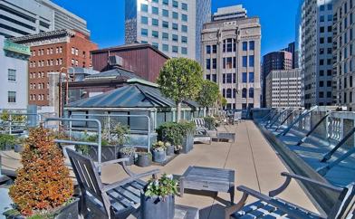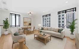 Contemporary Living In Historic Jewel: This stunning 10th floor corner-residence in the Financial District offers 2 bedrooms, 2 full baths (one en suite) and a flexible workplace in the second bedroom. With 11' ceilings and large windows on three sides, the space is bathed in natural light streaming through restored wrought-iron casement windows. New hardwood floors with cork underlayment, new carpeting in bedrooms, upgraded recessed lighting, AC, washer/dryer, stainless steel appliances and large deeded storage. Taken together these present the opportunity for an inviting and truly unique home. The property is located in the Royal Insurance Building, a designated historical San Francisco Landmark. This architectural gem was the first modern office building constructed after the 1906 earthquake. No expense was spared to make the building an important symbol for the city. In 2007 the Royal was beautifully restored and modernized into luxury condominiums. At the corner of Pine & Sansome streets, it is situated across from the Four Seasons Hotel on one side and Equinox on the other. It affords short walks to: SoMa, The Ferry Building, Union Square, Chinatown and North Beach. Amenities include a refreshing roof garden and an elegant lounge. Truly remarkable and memorable.