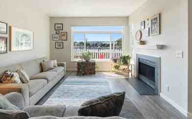 Waterfront view - coastal living. Start your day with a stroll along the Bay Trail, then take a 30-minute ferry ride to San Franciscono Bay Bridge stress, just coffee and views. Sunday farmers market in nearby park. This 2BR/2.5BA PUD townhome in Marina Bay blends coastal charm with modern comfort. A sunny patio with a white-picket-fence and two dedicated parking spaces offer privacy and convenience rarely found in a gated community. Inside, light-filled spaces feature LVP floors, 9-ft ceilings, and a cozy fireplace. The kitchen has an open counter for bar stool seating and pass through to dining room; great for relaxed gatherings. Two ensuite bedrooms upstairsboth with vaulted ceilings and water viewsprovide peaceful retreats. Low HOA dues, scenic paths, and marina access are right outside your door. Life here feels like a getawayevery single day.