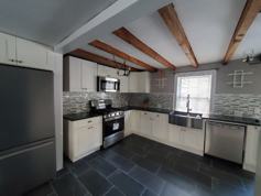 New kitchen with new appliances, new kitchen and dining room tiled floor, new carpeting on stairs and throughout the upstairs rooms. Bathroom has new flooring.