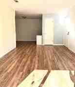 The fully equipped kitchen includes a microwave, range/oven, refrigerator, washer, dryer, and freezer. Laminate flooring flows through the spacious living areas, where large sliding glass doors fill the space with natural light—ideal for relaxing or entertaining.