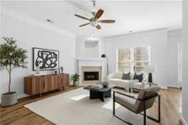Beautiful end-unit townhome with a private back patio overlooking a serene, wooded area. Enjoy an unbeatable location just minutes from downtown Alpharetta and Avalon, as well as Milton/Crabapple and Roswell. The main level features beautiful new flooring and a spacious, light-filled family room that flows seamlessly into the dining area. The kitchen is well-appointed with stainless steel appliances and a gas range, and a convenient powder room completes the first floor. Upstairs, you'll find an oversized primary suite with a large walk-in closet and a private ensuite bath. The second bedroom also features its own full bathroom, offering an ideal roommate or guest-friendly layout. The laundry is conveniently located in the upstairs hallway, with washer and dryer included. Step outside from the dining area to a private back patio overlooking a peaceful wooded setting perfect for enjoying your morning coffee or unwinding at the end of the day. Two reserved parking spaces are located directly in front of the unit for added convenience.