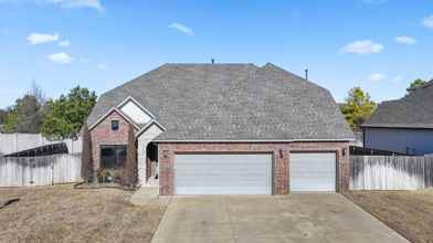 Stunner! This beautiful home features a spacious open floor plan with primary suite and private office on 1st level. Upstairs offers a huge game room and 3 additional bedrooms + 3.5 baths Enjoy a covered back patio, a functional mudroom, impressive primary suite complete with a massive walk in closet, his and hers sink, and a relaxing whirlpool tub. Elegant kitchen with oversized island, granite counters, Farmhouse sink, stainless steel appliances, and gas cooktop Ideally located with quick access to Tulsa hills, highways, and neighborhood pool and clubhouse. This home truly has it all!!