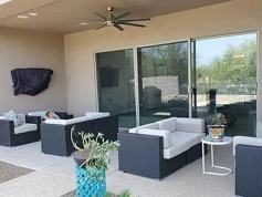 Property Overview Welcome home to this beautiful contemporary residence nestled in the desirable Rancho Vistoso area of Oro Valley / Northwest Tucson. Boasting panoramic mountain and sunset views, this home blends modern design with warm Arizona lifestyle features perfect for relaxing evenings or entertaining guests. Interior Highlights Open, light-filled floorplan with soaring ceilings Great room ideal for gatherings Gourmet kitchen with high-end stainless steel appliances Concrete floors throughout for a sleek, low-maintenance look Split bedroom plan for added privacy Large primary suite with spacious walk-in closet Versatile den/loft space could serve as office, guest room, or studio In-unit laundry closet Central heating & cooling with ceiling fans Outdoor & Lot Features Dual outdoor living areas ground-level patio and upper deck Breathtaking sunrises, sunsets & mountain views Professionally landscaped low-care yard Quiet cul-de-sac location Desert-friendly landscaping with irrigation Community & Location Close to hiking, golf, shopping, dining, and easy access to major commute routes Quiet, well-maintained neighborhood with scenic desert backdrop.