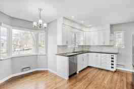 Set on a sunny, south-facing corner lot, the property showcases a thoughtful mix of timeless character and contemporary updates. The main level offers an open and airy living and dining space highlighted by hardwood floors, built-in cabinetry, and abundant natural light. The remodeled kitchen features quartz countertops, stainless steel appliances, a pantry, and a charming breakfast nook.