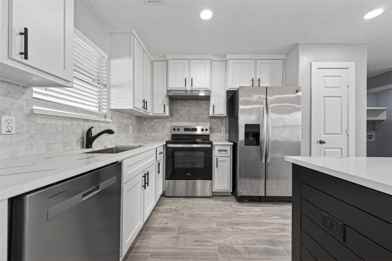Come tour this charming home located in Creekside Village. The owners have completely renovated the 3 bed, 2 full bath home and upgrade the flooring with ceramic tile and quartz countertops throughout. The kitchen/living room has an open concept layout perfect for cooking and entertaining. The home features a large backyard with new covered patio, perfect for hosting. New roof and new A/C.