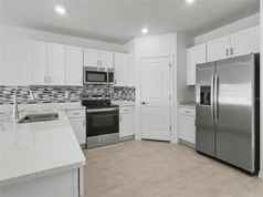 Welcome to this stunning brand-new home offering modern living, spacious design, and fresh, untouched finishes throughout. As you step inside, you're greeted by a bright open-concept floor plan with large-format tile floors, recessed lighting, and abundant natural light flowing through every room. The contemporary kitchen is a true standout—complete with stainless steel appliances, sleek quartz countertops, white shaker cabinets, a stylish tile backsplash, and a large island perfect for meal prep and casual dining. The kitchen opens seamlessly to the expansive living and dining areas, creating an inviting space ideal for entertaining or relaxing with family. All bedrooms are generously sized and feature plush brand-new carpeting, fresh paint, and large windows. The primary suite includes a spacious walk-in closet and a modern ensuite bathroom with dual sinks, quartz counters, and an oversized walk-in shower. The additional bedrooms offer versatility—perfect for family, guests, or a home office. The second full bathroom features a clean, modern design with a tub/shower combo and polished finishes. Sliding glass doors lead to the backyard, providing easy indoor–outdoor living and plenty of natural light. This home truly offers the best of modern construction—energy-efficient features, brand-new systems, pristine interiors, and a layout designed for comfort and convenience.