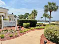 Step into this beautifully renovated 3-bedroom, 2-bath home located in the serene, gated Sunset Beach community of Bluewater Bay. Enjoy resort-style amenities including a private pool, private beach, and the Sunset Beach deck and clubhouse—just a short 0.04-mile walk to the sand. Situated on the golf course, this meticulously maintained home offers views of the 7th hole from the screened-in back patio. Inside, you'll find abundant natural light, 9-foot ceilings, bright finishes, and modern updates throughout. The open-concept living area features a cozy fireplace with built-in shelving, while the updated kitchen includes an island, breakfast bar, soft-close cabinetry, and granite countertops. Residents enjoy access to the marina, walking trails, and golf.
