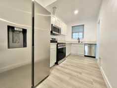 Carefully restored and designed by a renowned LA designer, these 1920s vintage luxury rental homes feature keyless entry door locks to spacious one bedroom and two-bedroom floor plans with arched entry ways to newly renovated kitchen and bathrooms. The kitchen boasts sparkling white stone quartz countertops with brand new self-closing cabinetry and high-end Samsung stainless-steel refrigerators with matching gas cooktop with oven and microwave. Stacked washer and dryers included inside each rental home with porcelain tiled bath tubs, and glass shower doors and separate guest bathrooms. Each rental homes also includes central A/C cooling and heating with recessed lights with luxury style remote control blinds and distressed wood plank floors.