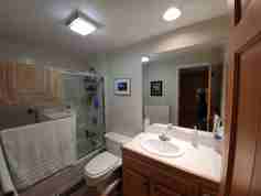 Updated 2 bedroom, 2 bath condo. Cozy second floor unit with wood burning (gas lite) fireplace offers one King bedroom and one with two Twin beds. Small deck for enjoying the mountain air. Close to lake, beaches, restaurants and shops.