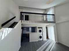 Beautiful newly renovated 1-bedroom, 1-bath loft-style, corner lot townhouse featuring vaulted ceilings and a bright, open floor plan that feels spacious and inviting. Enjoy hardwood flooring, central A/C, and convenient in-unit laundry.