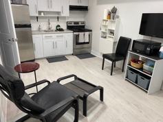 Short term or longer term fully furnished basement studio / bachelor in a beautiful area of Etobicoke a 10 minute walk to Kipling subway station. Separate entrance. Includes all utilities such as Heat, Water, Hydro, WIFI-Internet, TV, Cable. Also includes television, fridge, stove, private washer/dryer, queen size bed, dresser, night tables, microwave, coffee maker, toaster, kettle, all cooking dishes such as utensils/dishes/pots and pans, bath and bedroom linens. Private laundry. There is a storage room inside the apartment and a tiny patio for your own use. Parking to be discussed if you need it. All you need is your cell phone. Suitable for one or 2 people, $1750 per month with a minimum of four months. Credit check performed. First and last months rent. Available January 23. Contact MJ via email