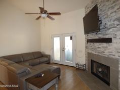 This FURNISHED 3BD/2BA home in Marana's Continental Ranch is ready for your short or long term stay! Has all the comforts of home with a wonderful eat-in kitchen featuring white shaker cabinets, ss appliances, quartz counters, mosaic backsplash and even a built-in desk. The living area has a cozy fireplace and French doors leading to the back patio for your outdoor enjoyment. The main bedroom is spacious and private with a large walk-in closet and a private bathroom with dual sinks, garden tub and separate shower. The second bedroom is set-up as an office with a desk, chair and shelves for a convenient working space. This home is ideal for winter visitors or traveling professionals!