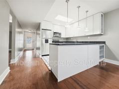 The home features an open kitchen that flows into the dining and living areas, creating a bright and welcoming main living space. The kitchen includes stone countertops, stainless steel appliances, and a breakfast bar, ideal for casual meals or entertaining. From the living room, sliding glass doors open to a covered, screened patio, extending the living space outdoors and overlooking a small, fenced private yard - a rare feature for condo living and perfect for relaxing or enjoying fresh air. Wood flooring runs throughout the main living areas, with tile in the kitchen and bathrooms for easy maintenance. The master bedroom offers an updated closet and a private en-suite bathroom with a large soaking tub. A stackable washer and dryer are included for added convenience.