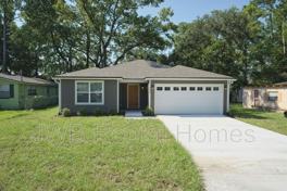This home is a 3Bd/2Bth Northside Jacksonville new-construction house offering 1,209 sq ft with an open floor plan, wood-like vinyl flooring, central A/C, and washer/dryer hookups. The recently renovated kitchen features hardwood cabinets, granite countertops, a breakfast bar, refrigerator, and electric range. Enjoy a porch, patio, private yard, and attached 2-car garage. Close to shopping centers, neighborhood schools, and major roadways for easy commuting.