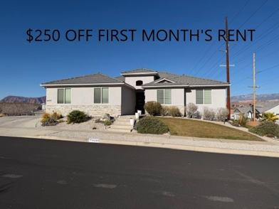 Come enjoy the beauty of Santa Clara with Amazing views of Snow Canyon and Pine Valley Mountains! This Beautiful home features 5 bedrooms (2 upstairs, 3 downstairs), an open office, 4 baths (2 upstairs, 2 downstairs), and 2 Large living areas. A Wonderful Kitchen with Stainless Steel appliances and bar seating. Fully fenced back yard with a built in gas fireplace, and large 3 car garage. Don't miss out! Call 435-673-4242 to schedule a showing or visit rpmsouthernutah. com to apply. Home will be rented unfurnished.