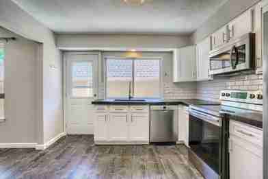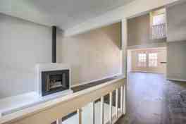 This home is newly remodeled, with vaulted ceilings that provide great natural light and you can view the space above from the second floor balcony. A conversation pit by the fireplace makes for a great place to spend time with loved ones.