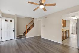 Move-in ready townhome offering fresh, modern updates throughout, including a new roof, fresh interior paint, and brand-new flooring. The galley-style kitchen flows seamlessly into the dining and den area, highlighted by a sliding glass door that floods the space with natural light—ideal for both everyday living and entertaining. This well-designed floor plan features three spacious bedrooms and 2.5 baths, including a convenient half bath on the main level and a private primary suite upstairs with its own en-suite bath. Go outside to enjoy the deck and fenced backyard, perfect for relaxing or hosting guests, along with the added convenience of a rear storage shed for extra space.