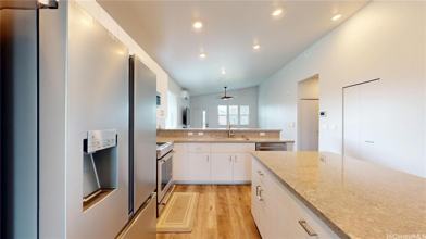 The kitchen is thoughtfully designed with a stainless steel French-door refrigerator with bottom freezer, dishwasher, garbage disposal, microwave hood, and ample cabinet space?ideal for everyday living and entertaining. A solar water heater helps reduce utility costs and improve energy efficiency.