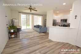 Fantastic two-bedroom, two-bathroom first-floor condo in the Tidewater Colony community of Annapolis. Spacious open plan living, dining, and central kitchen with stone counters and stainless steel appliances. Large master suite with high ceilings, master bathroom with a step-in master shower, and separate soaking tub. Additional second bedroom and second bath full bathroom with double vanities. Private covered patio with the community grounds behind. In-unit washer and dryer. Includes free use of the community pool, clubhouse, and workout room. Water included.
