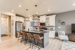 • Large kitchen island with quartz countertops