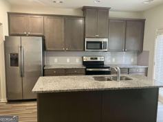 Home is ready to move in! Beautiful, gated community, minutes from Stone Mountain Park. Well maintained and modern 3-bedroom, 2.5 bath home offers beautiful upgrades throughout. Open and very stylish kitchen, luxurious granite countertops, large spacious island, eat-in breakfast area with access to private gated backyard. Large Primary Suite with a tray ceiling and a generous walk-in closet. HOA takes care of common area maintenance and amenities. Don't miss out on this one! **GATED COMMUNITY**