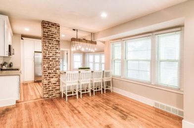 - Bright, open-concept living area with refinished hardwood floors