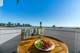 This one-bedroom home is located in Bankers Hill, close to Downtown, Little Italy, and Balboa Park. The unit offers views of the bay, Downtown skyline, passing ships, aircraft, and SeaWorld fireworks. The primary bedroom has a king bed with hotel-quality linens.