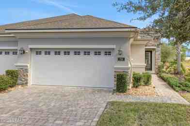 This beautiful one-story townhome built in 2018 is located in the sought-after Plantation Bay Gated Golf Community. This spacious home features two bedrooms, two full bathrooms, and an office/den area. The kitchen features stainless steel appliances and beautiful tile backsplash behind the cabinets, creating a clean, modern look. The spacious primary suite includes two oversized walk-in closets and a well-appointed en-suite bath with a walk-in shower. Enjoy Florida living on the screened-in Lanai overlooking a tranquil pond, perfect for relaxing or entertaining this home combines modern design comfort, and low-maintenance living in a premier golf community. Several packages to choose from include 45 holes of golf, tennis, pickle ball, 2 pools, cabana, spa/fitness center and the New Clubhouse! Buyers of this home will receive a substantial discount on the initiation fees when you join within 30 days of closing.