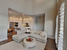 Exquisitely appointed two-story luxury townhome located in the prestigious and highly sought-after Walsh Community in Aledo. Designed with sophistication and comfort in mind, this residence showcases upscale finishes, designer flooring, and a seamless open-concept layout ideal for modern living. The gourmet chef’s kitchen is a true showpiece, featuring a gas cooktop, quartz countertops, stainless steel appliances, custom backsplash, walk-in pantry, and an expansive oversized island with breakfast bar seating. A charming breakfast nook and walls of windows, including elegant bay windows, flood the home with natural light, while vaulted ceilings enhance the sense of space and grandeur. The primary suite offers a serene, spa-inspired retreat complete with dual vanities, soaking garden tub, oversized walk-in shower, and an impressive walk-in closet. Upstairs, a versatile loft provides additional living or entertaining space, accompanied by three generously sized bedrooms and 2.5 beautifully finished bathrooms. Step outside to a private patio perfect for refined outdoor entertaining and grilling. Residents enjoy access to exceptional community amenities, including a resort-style pool, state-of-the-art fitness center, electric vehicle charging stations, scenic greenbelts, fishing areas, jogging and bike paths, parks, playgrounds, sidewalks, and tennis courts. Washer and dryer are included. Available fully furnished price to be negotiated. Home is offering a truly turnkey luxury living experience. Text Sarah Braddock-Horton for details 972-816-6448.