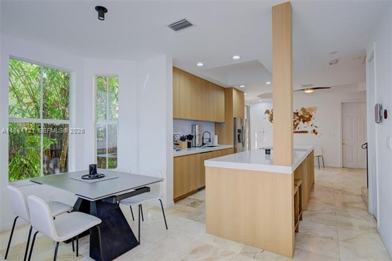 TThis beautifully furnished and expansive 3-bedroom, 3-bath townhouse offers over 2,000 square feet of refined living space in the heart of Coral Gables. The multi-level layout features dramatic 22-foot ceilings in the main living area, 9-foot ceilings throughout, abundant natural light, and lush surrounding greenery. The open-concept kitchen showcases rich wood cabinetry, modern appliances, and a built-in wine refrigerator, perfect for entertaining. Enjoy effortless indoor-outdoor living with a private terrace, along with the added convenience of a full laundry room equipped with Whirlpool washer and dryer and an attached garage. Ideally situated on Ponce de Leon, the home is just minutes from the University of Miami, Coconut Grove, South Miami, and Miracle Mile, placing premier dining, shopping, and lifestyle destinations right at your doorstep.