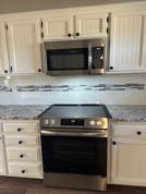 Beautifully updated Blue Springs home with modern finishes. This is a spacious home with 3 bedrooms and 2 full bath on main level and a bonus room and 1/2 bath on lower level. Features include cathedral ceilings, skylights and brick fireplace in family room. Kitchen includes white cabinets, new stove, microwave, stainless fridge and plenty of counter space and storage. Also included is full size washer and dryer on main level, a large fenced in backyard and a two car garage w/ remote opener. The front yard has been freshly seeded for spring.