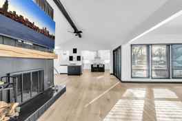 Welcome to this fully renovated raised ranch home, sitting on almost an acre lot in a peaceful wooded setting. Meticulously renovated in 2022, this home perfectly blends modern design with functionality. Featuring 3 spacious bedrooms, a den/office space, and 3.5 luxurious bathrooms, every inch of the property has been thoughtfully transformed with high-end finishes and attention to detail. The open-concept floor plan creates a seamless flow throughout the home, with stunning white oak floors adding warmth and elegance, and large windows bringing in an abundance of natural light. The custom kitchen is a chef's dream, featuring top-of-the-line Bosch appliances, double oven, wine fridge, built in stove, sleek countertops, custom crafted cabinetry, etc. Step outside to the deck from the kitchen to enjoy morning coffee or hosting summer cookouts while listening to the peaceful sounds of nature. The kitchen opens into a large living and dining area, making it ideal for both casual gatherings and formal entertaining. The Great Room is highlighted by a cozy gas-start fireplace, vaulted ceilings, and a wall of windows that bring the beauty of the outdoors inside. The master bedroom is a true retreat, offering ample space and picturesque views. The beautifully designed en-suite bathroom features high-end fixtures and finishes, including a dual vanity and a walk-in shower. Custom closets throughout the home provide optimal storage and organization. An 800 sq ft hidden crawlspace in the master bedroom offers valuable extra storage space. In addition to the main level, there is a second laundry room added, and a loft area overlooks the Great Room, offering a versatile space that can be used as a private home office, an intimate reading nook, or a kids' play area. The finished basement adds incredible value, featuring a large recreation room with a second fireplace, a game room, and a spacious office area. The basement also includes a full bathroom, laundry room, a study, and brand-new carpeting, offering both work and leisure spaces for your lifestyle. For year-round comfort, the home is equipped with two new central heating and cooling units, ensuring optimal climate control throughout. The exterior of the home has been completely re-done with durable Hardy board siding and new gutters with covers. A beautifully renovated brick front walkway completes the stunning siding of this house. The beautifully landscaped yard features water drainage for efficient water management to keep the yard at low maintenance. The property also includes a two-car garage, providing ample space for vehicles and additional storage. Located just minutes from downtown Libertyville, the Metra station, farmers market, shopping, dining, and more, this exceptional home offers the perfect combination of luxury, comfort, and functionality. With its move-in-ready appeal, private wooded setting, and close proximity to everything the area has to offer, this home is truly a one-of-a-kind sanctuary. Home is partially furnished.