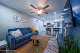 Experience elevated coastal living in this custom-remodeled one-bedroom short-term rental inspired by the timeless charm of Palm Beach. Designed for both comfort and flexibility, this unit offers two sleeping spaces-a luxurious king-size bed and a sofa that converts to an additional bed-making it ideal for extended stays or hosting guests. Fully equipped for convenience, the apartment includes a complete kitchen, high-speed Wi-Fi, free on-site parking, and complimentary washer and dryer access. Unwind in the expansive spa-like shower or enjoy the bright, sun-soaked ambiance reflected in every thoughtful detail. Guests have full access to shared outdoor amenities, including a BBQ grill, ping pong, foosball, and outdoor seating-perfect for relaxing or entertaining.