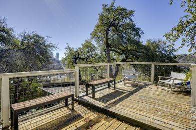Where this unit really stands out is the outdoor living. Enjoy a private patio on the first floor plus a second-story deck with city views, surrounded by mature greenery that gives it a relaxed, tucked-away vibe. There's also a large front porch, perfect for morning coffee or winding down in the evening.