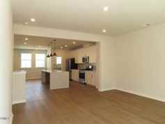 This newly built, three-story townhouse is in the Twinleaf Townes neighborhood, within 15 minutes of Franklin Street, UNC, Duke, RTP, and next to I40. There is a community fire pit a few doors down. The home offers a traditional floor plan with the common areas on the main level, the bedrooms on the third level and an additional flex room on the first level. On the ground level, a split staircase separates the entry hall from a generous flex room. The flex room has patio access, a closet, built-in hall tree, and a full bathroom with a shower. Access to the two-car garage completes this level. An expansive combined living, kitchen and dining space greets you on the main level, all with wood-look flooring. The living area provides ample space, rear deck access and a half bath. The kitchen features stainless appliances, a tile backsplash, walk-in pantry and a large quartz center island with a breakfast bar. The bedrooms, bathroom and laundry closet are on the carpeted third floor. The master bedroom features a walk-in closet and an en suite bathroom with tile floors, a double vanity and tile standing shower. A laundry closet comes installed with a washer and dryer. The two remaining bedrooms are convenient to the shared bathroom with a tub shower. Pet considered with fee and prior approval. $15/mo filter fee