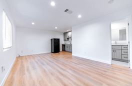 Explore this beautifully remodeled studio unit featuring high ceilings, a spacious open layout, recessed lighting, and stylish vinyl flooring throughout. The unit includes an electric cooktop, refrigerator, and a fully remodeled bathroom. Enjoy generous living space filled with abundant natural light. Conveniently located near local amenities, highly rated schools, and easy freeway access. Parking includes one driveway space.