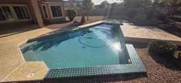 Stunning 4 bedroom home with sparkling pool in sought after N Glendale location! Enjoy worry free living, as landscape, pool maintenance are included in the monthly rent, and 50+ solar panels eliminate your electricity costs! Cost savings of $500-$800 per month. Best home location in Sierra Verde - with a park behind and beside this home. The huge back yard has mature landscape and RV gate. Light, bright home with open floorplan and tons of brand new windows overlooking your resort-style back yard. Soaring vaulted ceilings, plantation shutters, enormous extended kitchen with island and all stainless appliances, granite counters and built-in wine cooler. Split master retreat features a seating nook surrounded by windows overlooking back yard and park. See it today! Check out the Updates / Upgrades, which include: New Roof 2016, 50+ Solar panel system 2016, New Kitchen 2020, New triple pane windows throughout in 2023, Trane HVAC units in 2016, Hot Water Heater 2020, and Water Softener in 2022